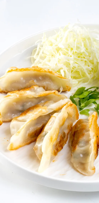 De ultieme Japanse klassieker. Dumplings gevuld met groentjes (5 stuks) Geserveerd met een huisgemaakte teriyakisaus.