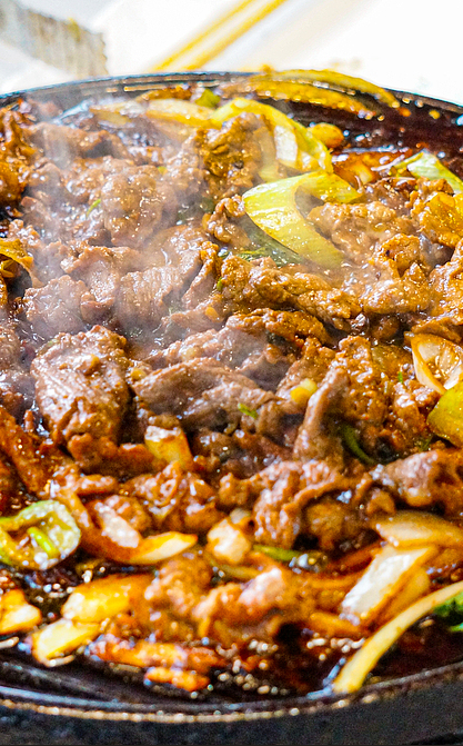 à la minute gewokt op extreem hoog vuur voor die karakteristieke 'Wok Hei'