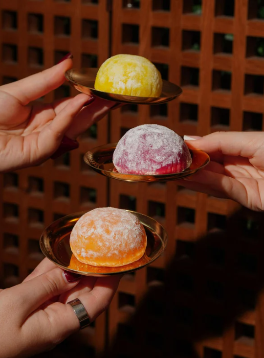 Drie zijdezachte rijstcakejes gevuld met ijs. Een unieke combinatie van een 'chewy' textuur en een smeltzachte kern. Selectie uit Vanille, Mango, Matcha en Framboos.
